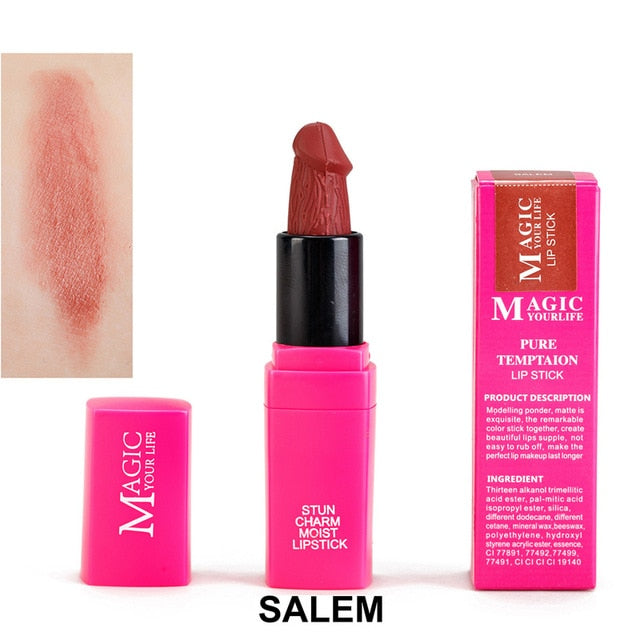 12 Colors Penis Shape Mushroom Long Lasting Moisture Cosmetic Lipstick Lips Makeup Waterproof Lipstick